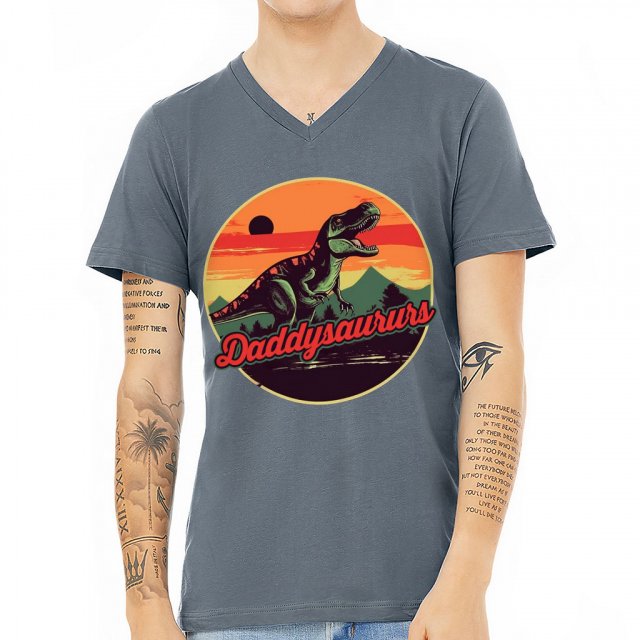 Daddysaurus V-Neck T-Shirt – Funny T-Shirt – Retro V-Neck Tee