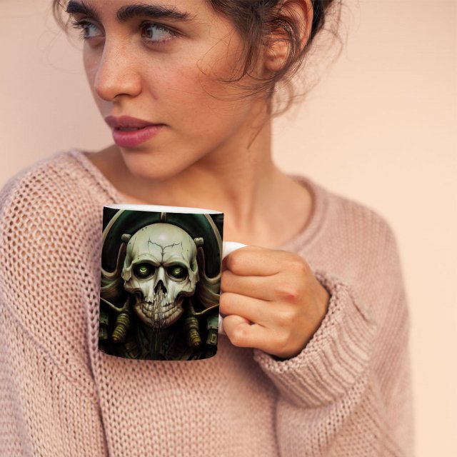 Death Mug with Heart Handle – Scary Face Mug – Creepy Skull Ceramic Mug