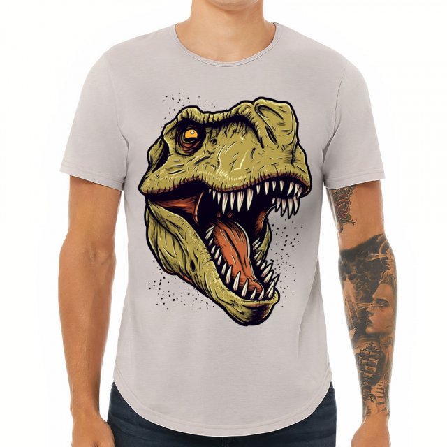 Dinosaur Head Curved Hem T-Shirt – Cool T-Shirt – Unique Curved Hem Tee
