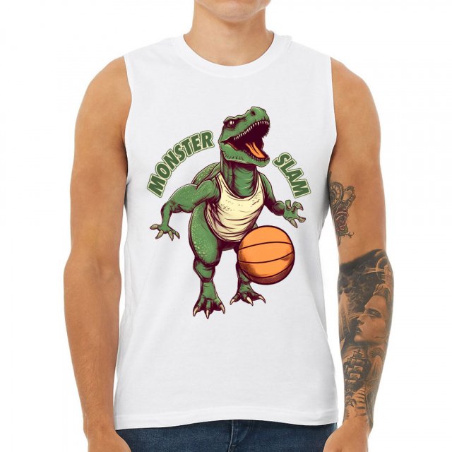 Dinosaur Playing Basketball Men’s Muscle Tank – Art Men’s Sleeveless T-Shirt – Funny Tank