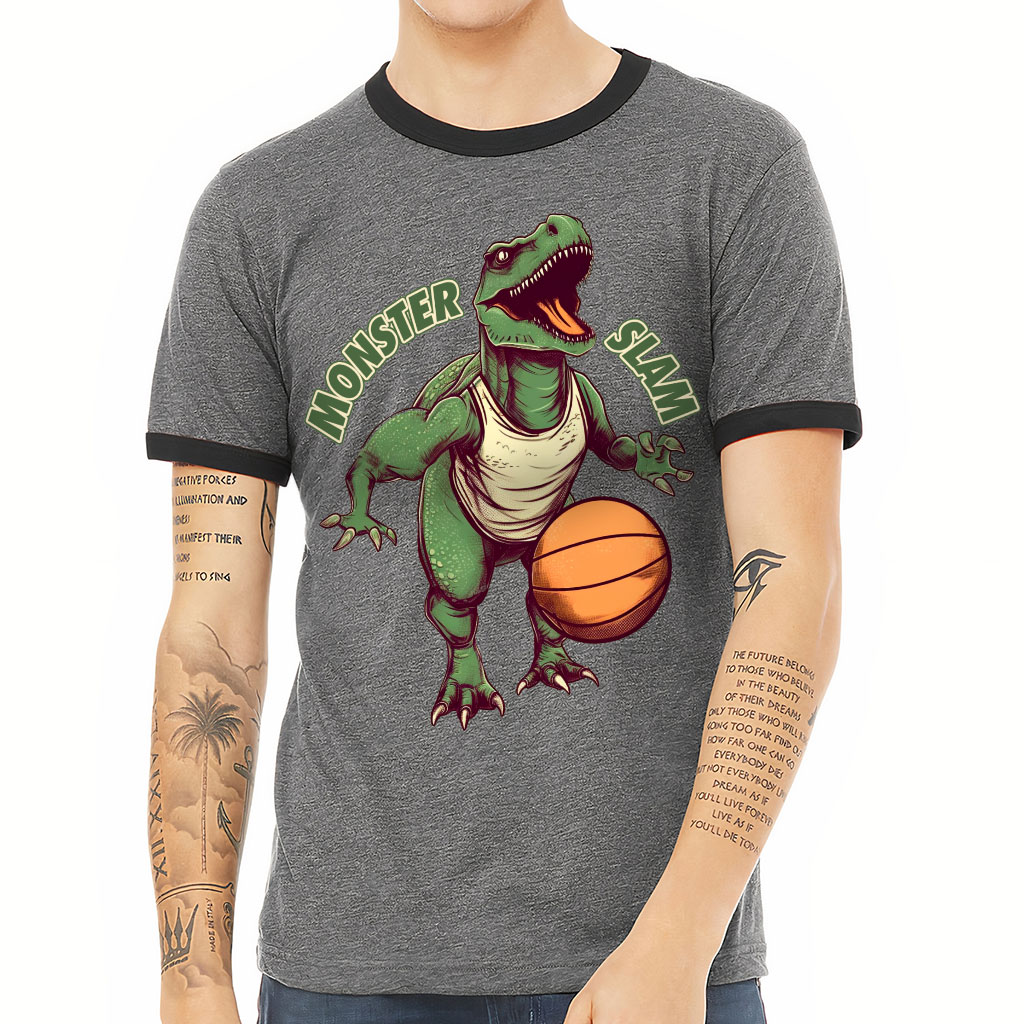 Dinosaur Playing Basketball Ringer T-Shirt – Art T-Shirt – Funny Ringer Tee