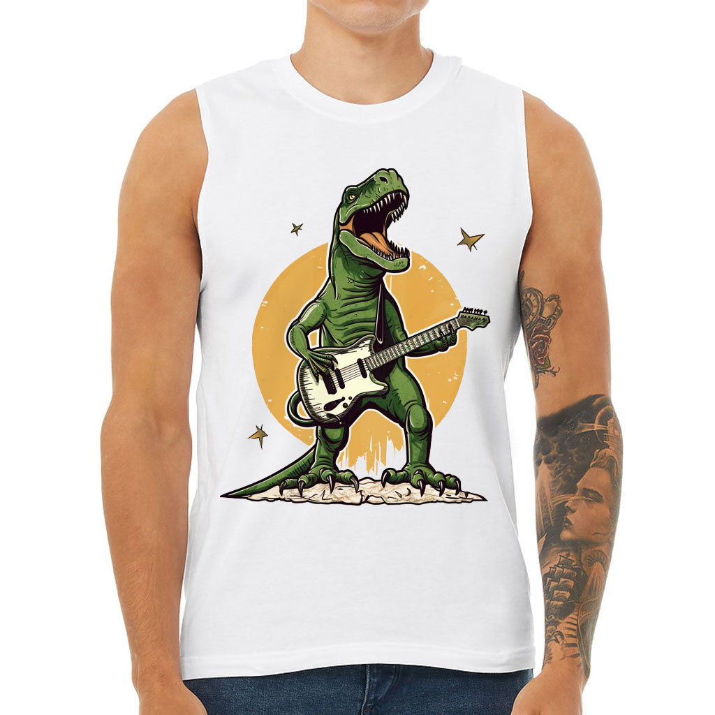 Dinosaur Playing Guitar Men’s Muscle Tank – Print Men’s Sleeveless T-Shirt – Music Tank