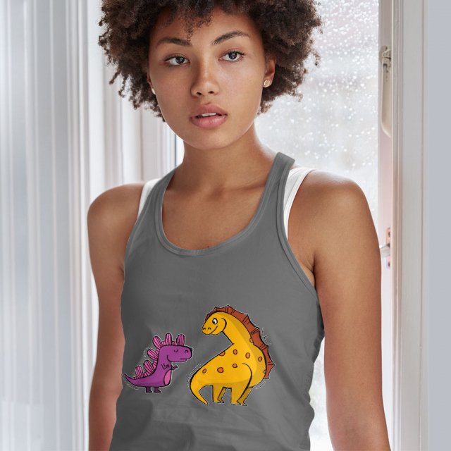 Dinosaur Print Racerback Tank – Cartoon Tank – Cute Design Workout Tank