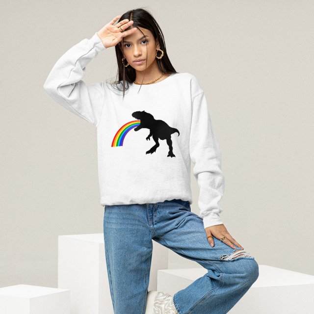 Dinosaur Rainbow Vomit Sweatshirt – Colorful Crewneck Sweatshirt – Themed Sweatshirt