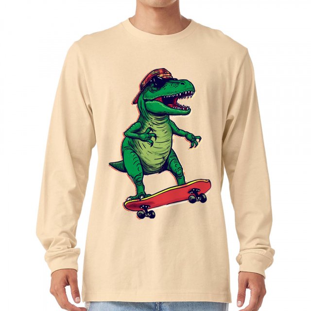 Dinosaur Skater Long Sleeve T-Shirt – Dinosaur T-Shirt – Art Long Sleeve Tee