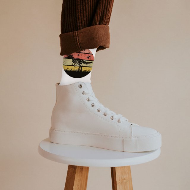 Dinosaur Skeleton Socks – Vintage Style Novelty Socks – Illustration Crew Socks