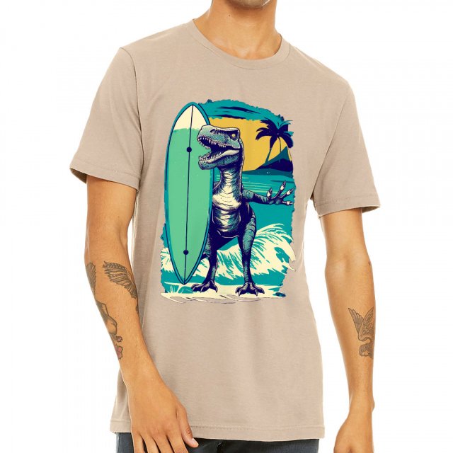 Dinosaur Surfer Short Sleeve T-Shirt – Retro T-Shirt – Cool Short Sleeve Tee