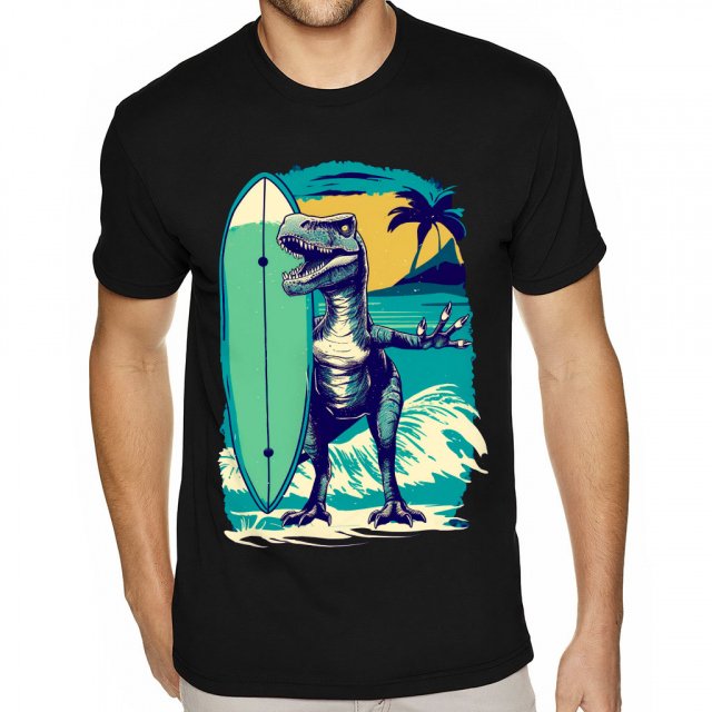 Cotton-Polyester material makes the best combination which is made especially for comfortable clothes. This composition makes Dinosaur Surfer Sueded T-Shirt very soft on the body. Natural fiber lets your skin breathe. It also absorbs moisture to keep your body temperature stable.