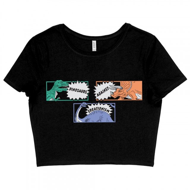 Dinosaurs Against Creationism Women’s Cropped T-Shirt – Graphic Crop Top – Funny Crop Tee Shirt