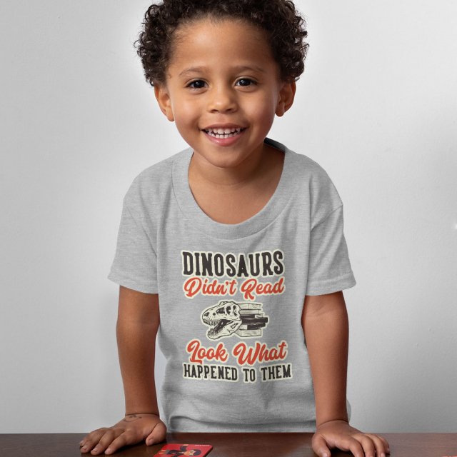 Dinosaurs Didn’t Read Toddler T-Shirt – Book Lover Kids’ T-Shirt – Printed Tee Shirt for Toddler