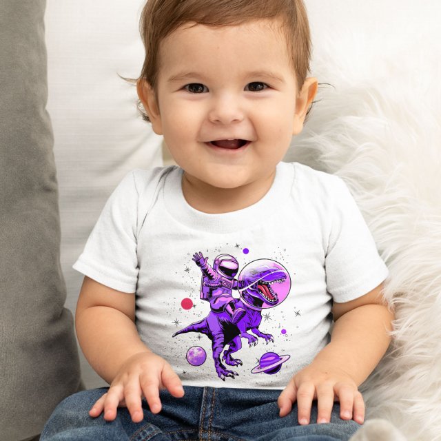 Dinosaurs In Space Baby Jersey T-Shirt – Astronaut Baby T-Shirt – Galaxy T-Shirt for Babies
