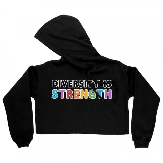 Diversity Is Strength Women’s Cropped Fleece Hoodie – Diversity Cropped Hoodie for Women – Text Design Hooded Sweatshirt