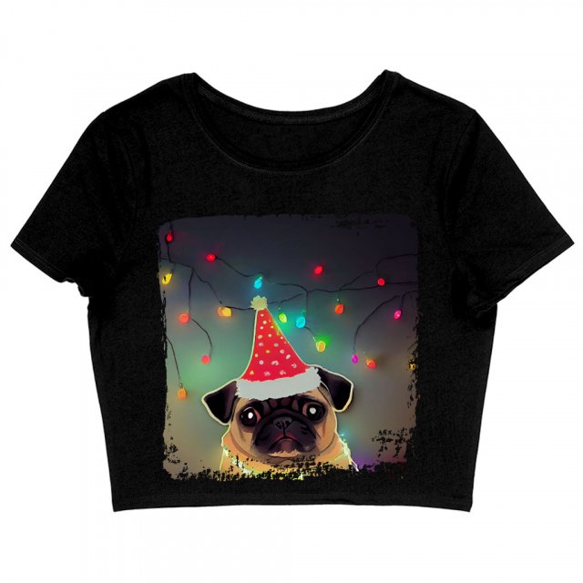 Dog Design Women’s Cropped T-Shirt – Pug Art Crop Top – Christmas Cropped Tee