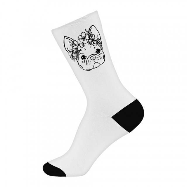 Dog Face Socks – Flower Print Novelty Socks – Graphic Crew Socks