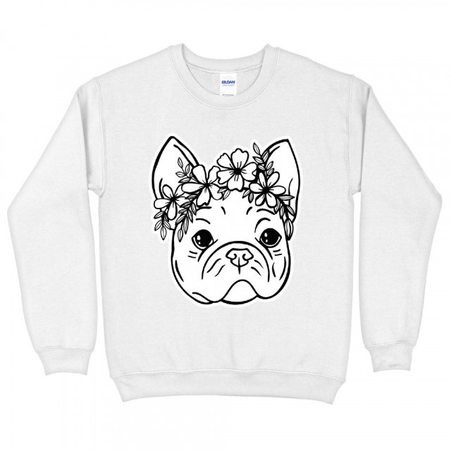 Dog Face Sweatshirt – Flower Print Crewneck Sweatshirt – Graphic Sweatshirt