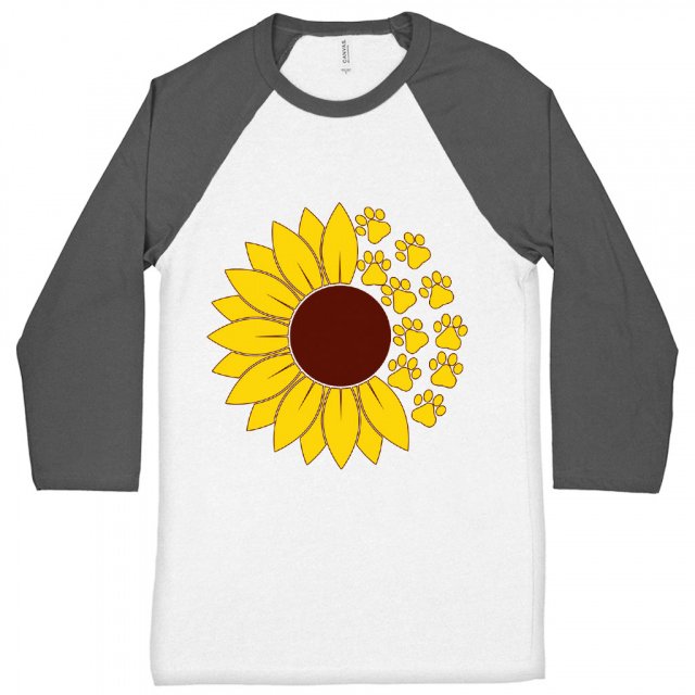 Dog Paw Baseball T-Shirt – Sunflower T-Shirt – Graphic Tee Shirt