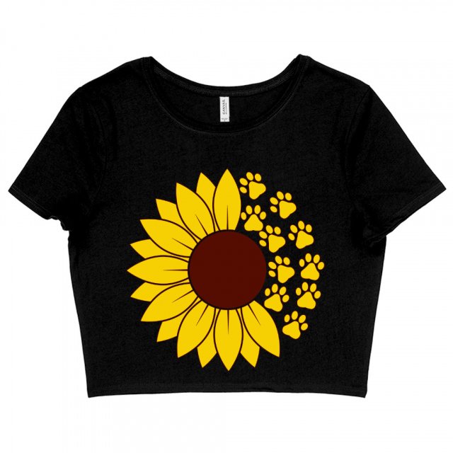 Dog Paw Women’s Cropped T-Shirt – Sunflower Crop Top – Graphic Crop Tee Shirt