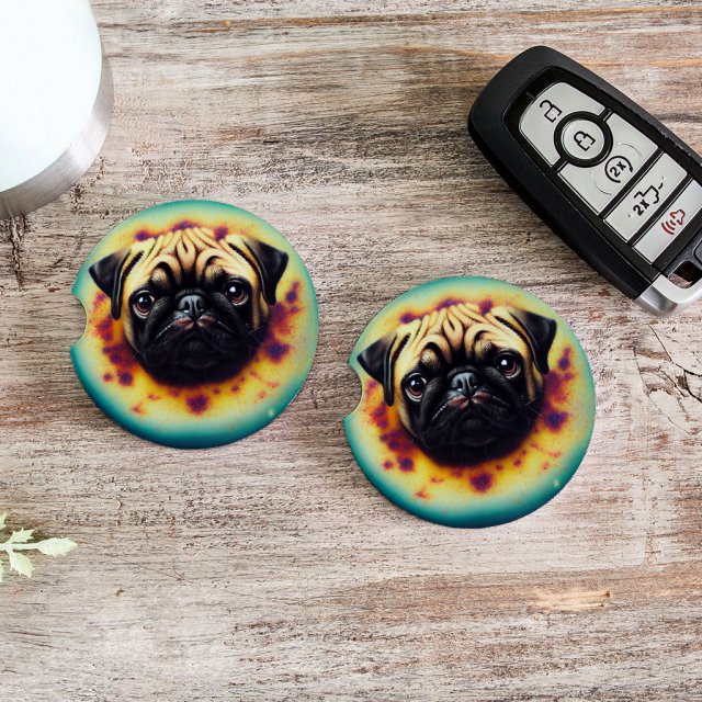 Dog Portrait Car Coaster – Pug Coasters – Puppy Car Coaster