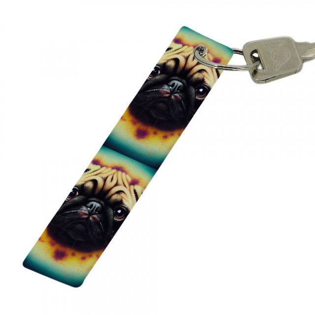 Dog Portrait Keychain – Pug Key Ring – Puppy Keychain
