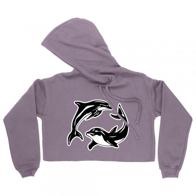 Dolphins Women’s Cropped Fleece Hoodie – Animal Cropped Hoodie for Women – Graphic Hooded Sweatshirt