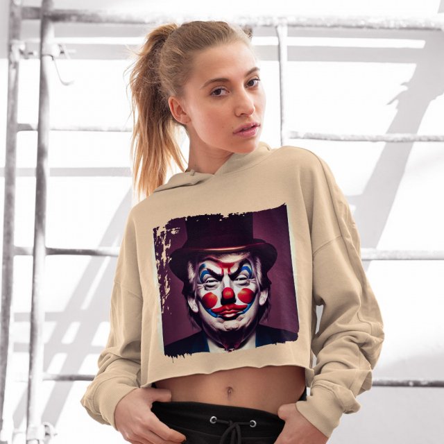 Donald Trump Clown Women’s Cropped Fleece Hoodie – Trump Cropped Hoodie for Women – Unique Hooded Sweatshirt