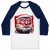 features raglan 3/4 sleeves and a modern fit that is perfect for a day