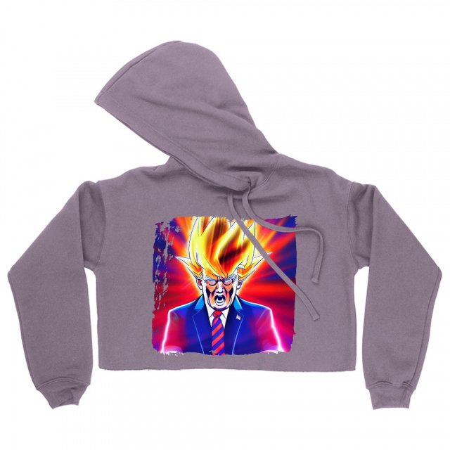 Donald Trump Print Women’s Cropped Fleece Hoodie – Anime Design Cropped Hoodie for Women – Printed Hooded Sweatshirt