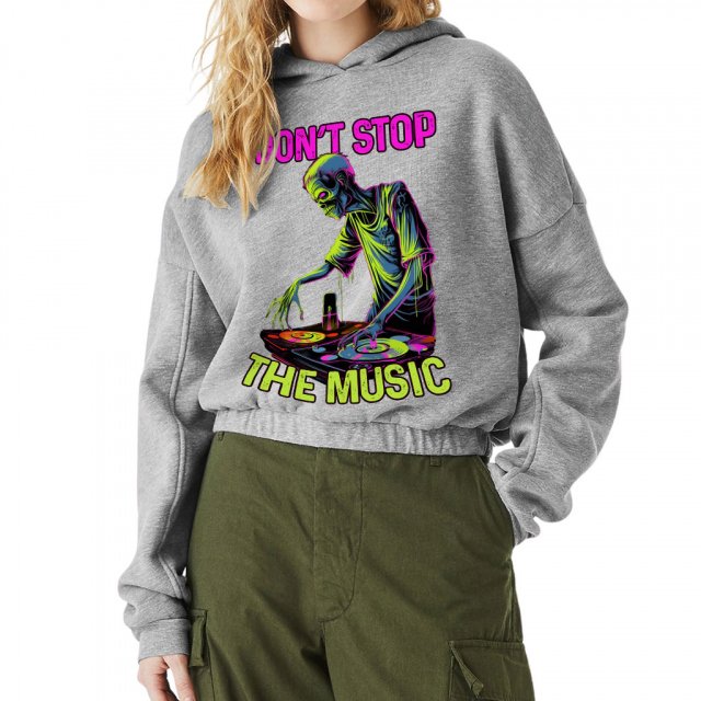 Don’t Stop the Music Cinched Bottom Hoodie – Cool Zombie Women’s Hoodie – Neon Hooded Sweatshirt