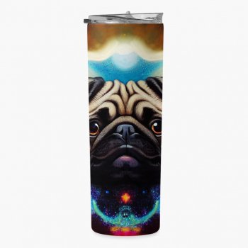 Pug Head 20oz Skinny Tumbler – Space Themed Travel Mug – Cute Animal 20oz Skinny Tumbler