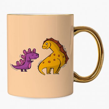 Dinosaur Print Mug – Cartoon Gold Rim and Handle Mug – Cute Mug