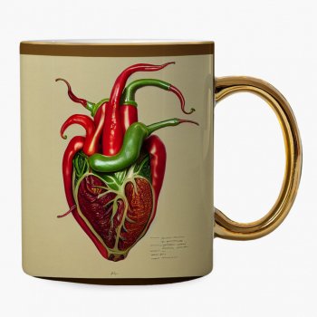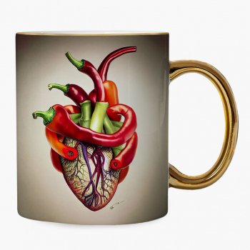 Chili Pepper Mug – Heart Gold Rim and Handle Mug – Art Mug