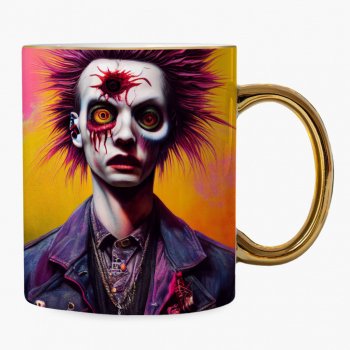 Punk Rock Hippie Mug – Scary Face Gold Rim and Handle Mug – Graphic Mug