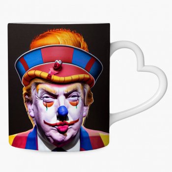 Funny Clown Mug with Heart Handle – Cool Art Mug – Graphic Ceramic Mug