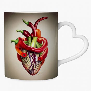 Chili Pepper Mug with Heart Handle – Heart Mug – Art Ceramic Mug