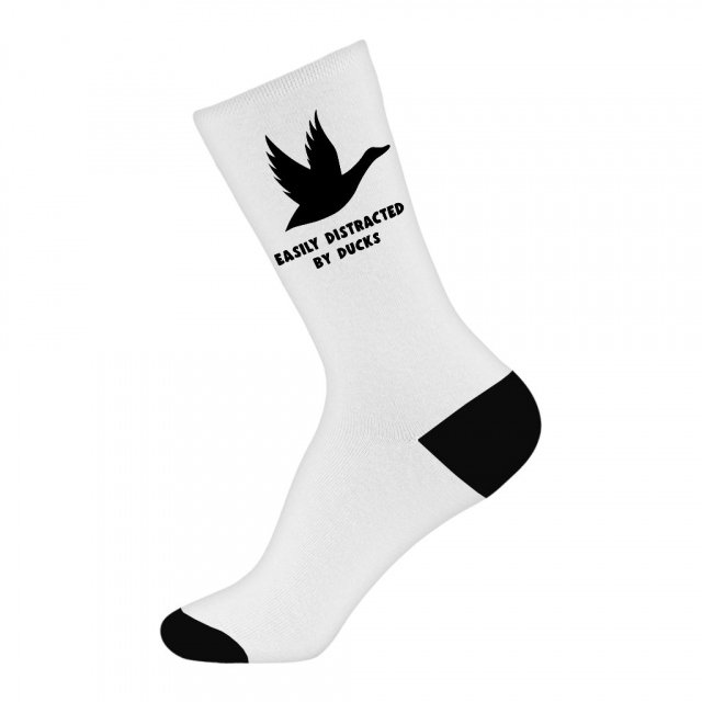 Easily Distracted Socks – Duck Novelty Socks – Text Design Crew Socks