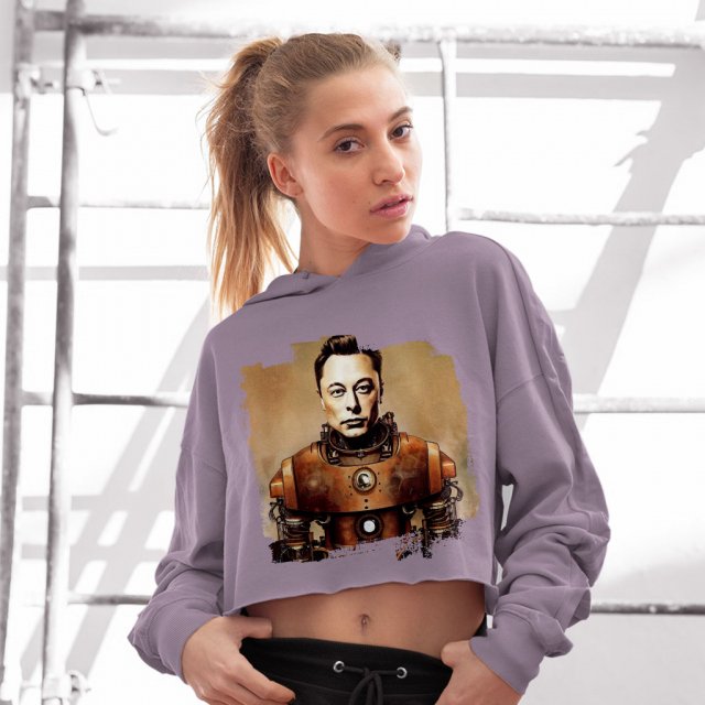 Elon Musk Women’s Cropped Fleece Hoodie – Steampunk Cropped Hoodie for Women – Artwork Hooded Sweatshirt