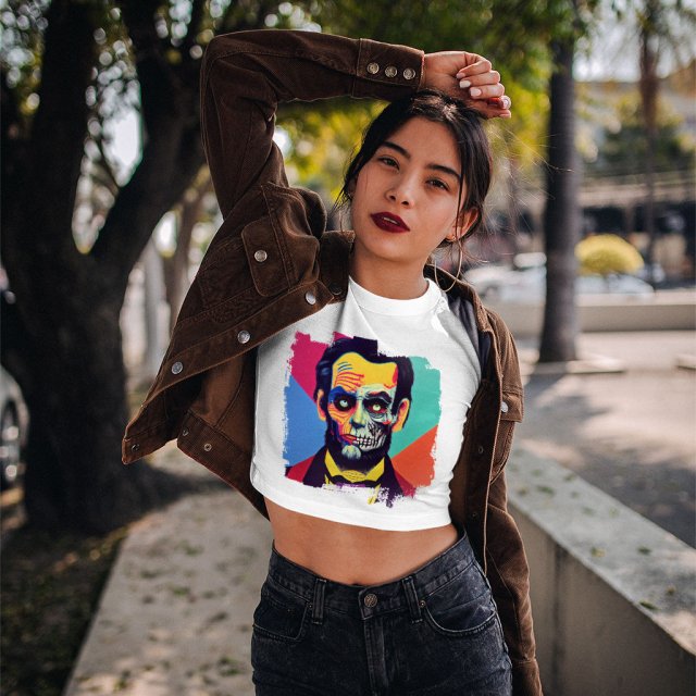 Evil Lincoln Women’s Cropped T-Shirt – Funny Zombie Crop Top – Pop Art Crop Tee Shirt