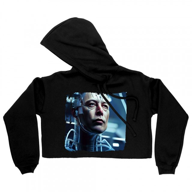 Famous Person Art Women’s Cropped Fleece Hoodie – Robot Cropped Hoodie for Women – Colorful Hooded Sweatshirt