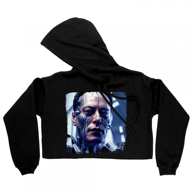 Famous Person Women’s Cropped Fleece Hoodie – Graphic Cropped Hoodie for Women – Futurist Print Hooded Sweatshirt