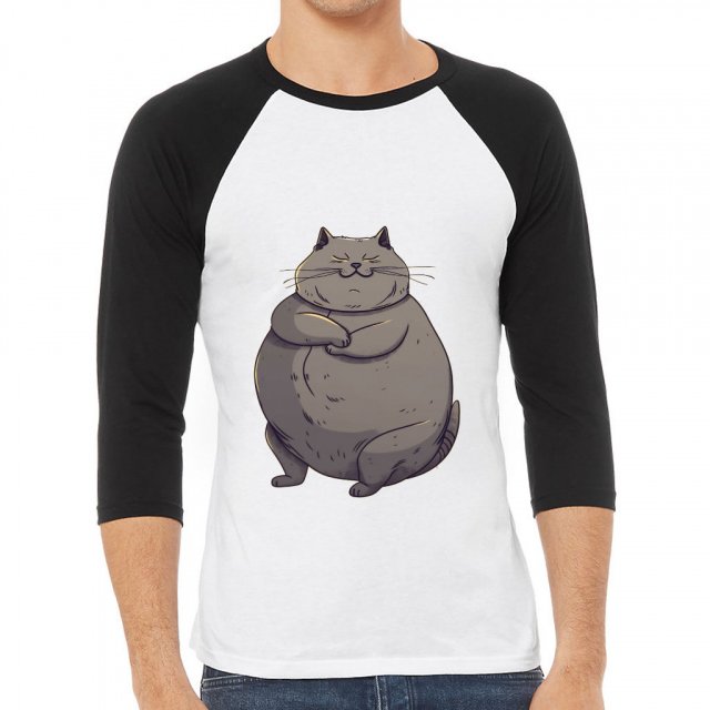 Fat Cat Baseball T-Shirt – Funny T-Shirt – Animal Art Baseball Tee