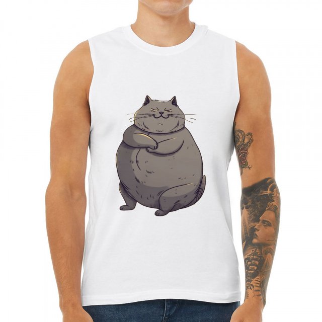 Fat Cat Men’s Muscle Tank – Funny Men’s Sleeveless T-Shirt – Animal Art Tank