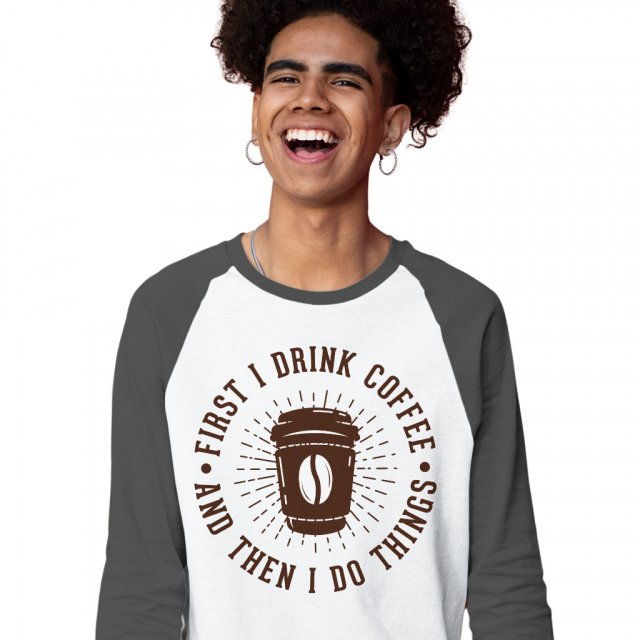 First I Drink Coffee Then I Do Things Baseball T-Shirt – Sarcastic T-Shirt – Cool Graphic Tee Shirt