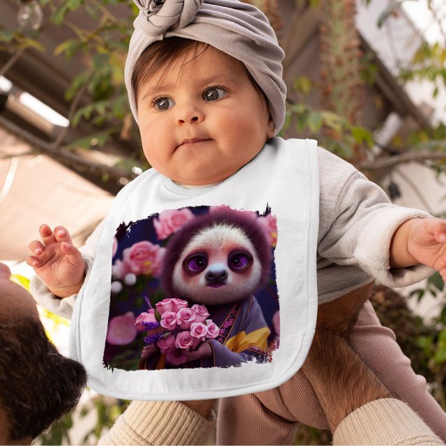 Flower Design Baby Bibs – Sloth Face Baby Feeding Bibs – Cute Graphic Bibs for Eating