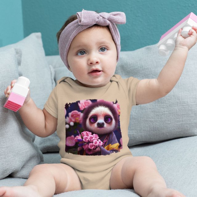 Flower Design Baby Jersey Onesie – Sloth Face Baby Onesie – Cute Graphic Baby One-Piece