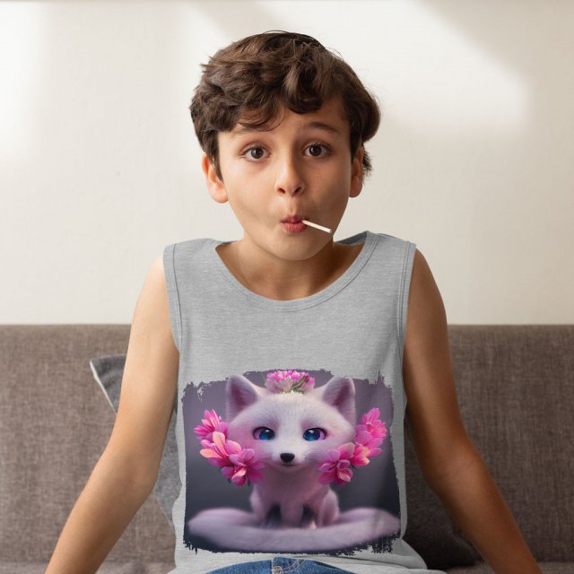 Fox Animal Kids’ Jersey Tank – Flower Print Sleeveless T-Shirt – Cute Kawaii Kids’ Tank Top