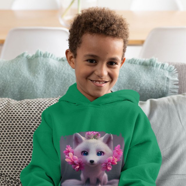 Fox Animal Toddler Hoodie – Flower Print Toddler Hooded Sweatshirt – Cute Kawaii Kids’ Hoodie
