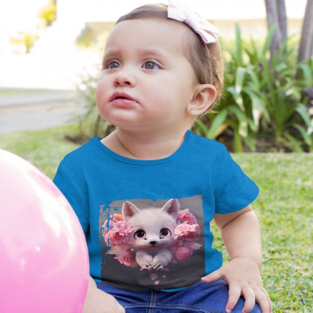 Fox Baby Jersey T-Shirt – Floral Baby T-Shirt – Kawaii T-Shirt for Babies