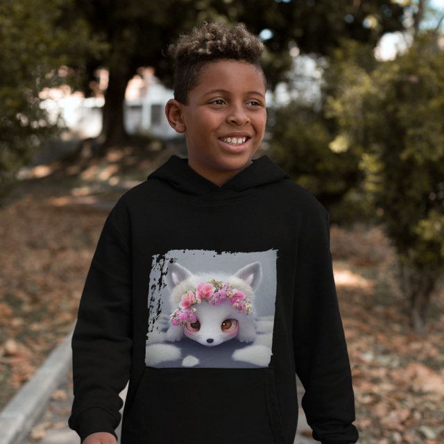 Fox Design Kids’ Sponge Fleece Hoodie – Cute Floral Kids’ Hoodie – Graphic Hoodie for Kids
