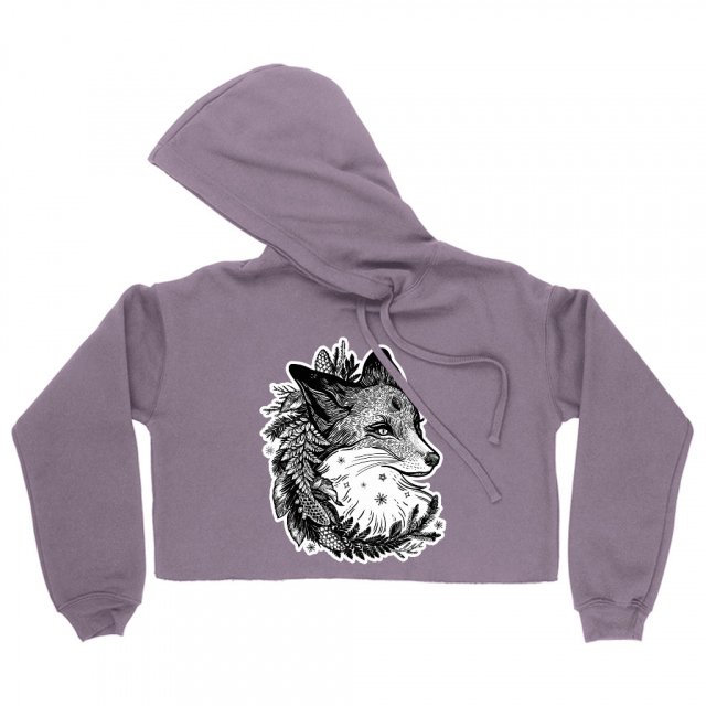 Fox Face Women’s Cropped Fleece Hoodie – Animal Cropped Hoodie for Women – Graphic Hooded Sweatshirt