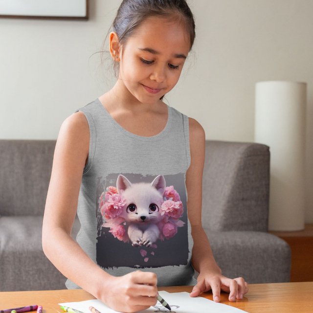 Fox Kids’ Jersey Tank – Floral Sleeveless T-Shirt – Kawaii Kids’ Tank Top